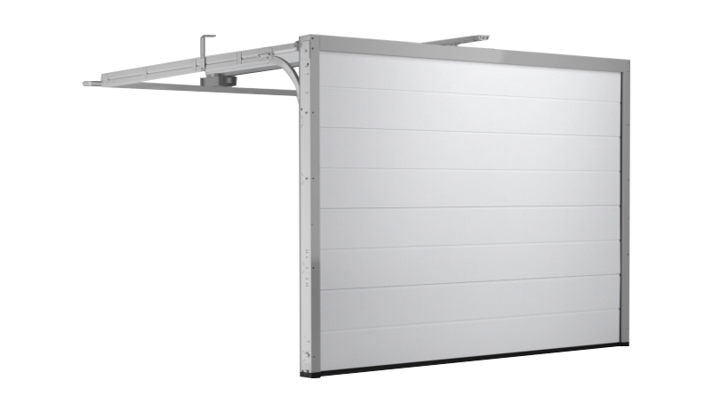 Sectional doors open vertically upwards and are suspended under the ceiling to save space. This construction principle means you can make full use of the space inside and in front of the garage. Additionally, sectional garage doors can be fitted in every garage door opening, offering a wider passage width and being well sealed.